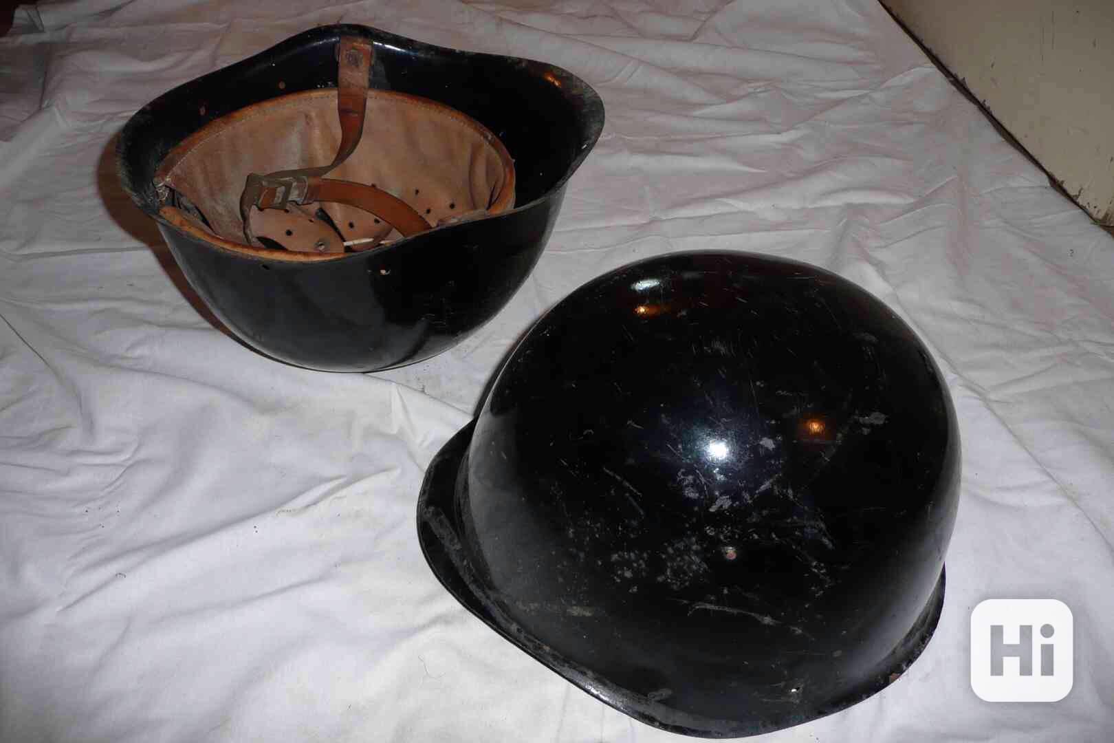 Černá plechová helma, stáří cca 60 roků, mírně poškrábaná, vnější ovál 25-30 cm,