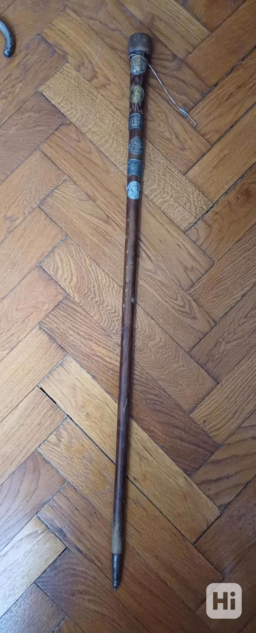 Prodám starožitnou turistickou hůl z 1.poloviny 20.století s 12ti starými sběratelskými plechovými štítky turistických cílů - navštívených lokalit, jako jsou hrady, zámly, rozhledny, lázně či muzea. Hůl má okovanou špičku. Délka hole - 90 cm. Osobní předání na Praze 3, nebo odeslání kurýrní službou. Volejte 770 630 523, nebo pište na morgiana007@gmail.com