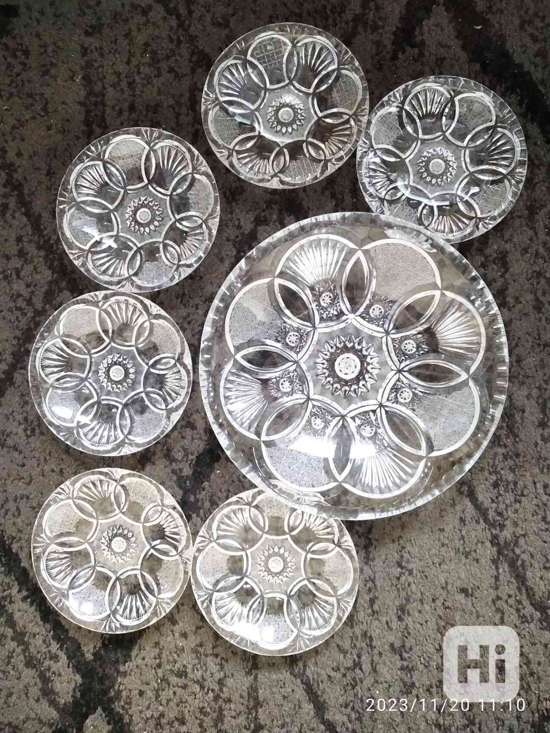 Prodám tuto broušenou krásnou soupravu. Velký talíř - mísa + šest talířků.