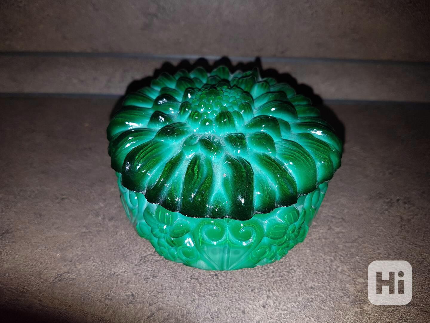 Prodám starožitnou dózu z malachitového skla, vyrobeno v Curt SCHLEVOGT do r. 1950. Perfektní stav. Průměr 10 cm. Osobní předání na Praze 3, nebo zaslání přes Zásilkovnu. Volejte 770 630 523, nebo pište na morgiana007@gmail.com