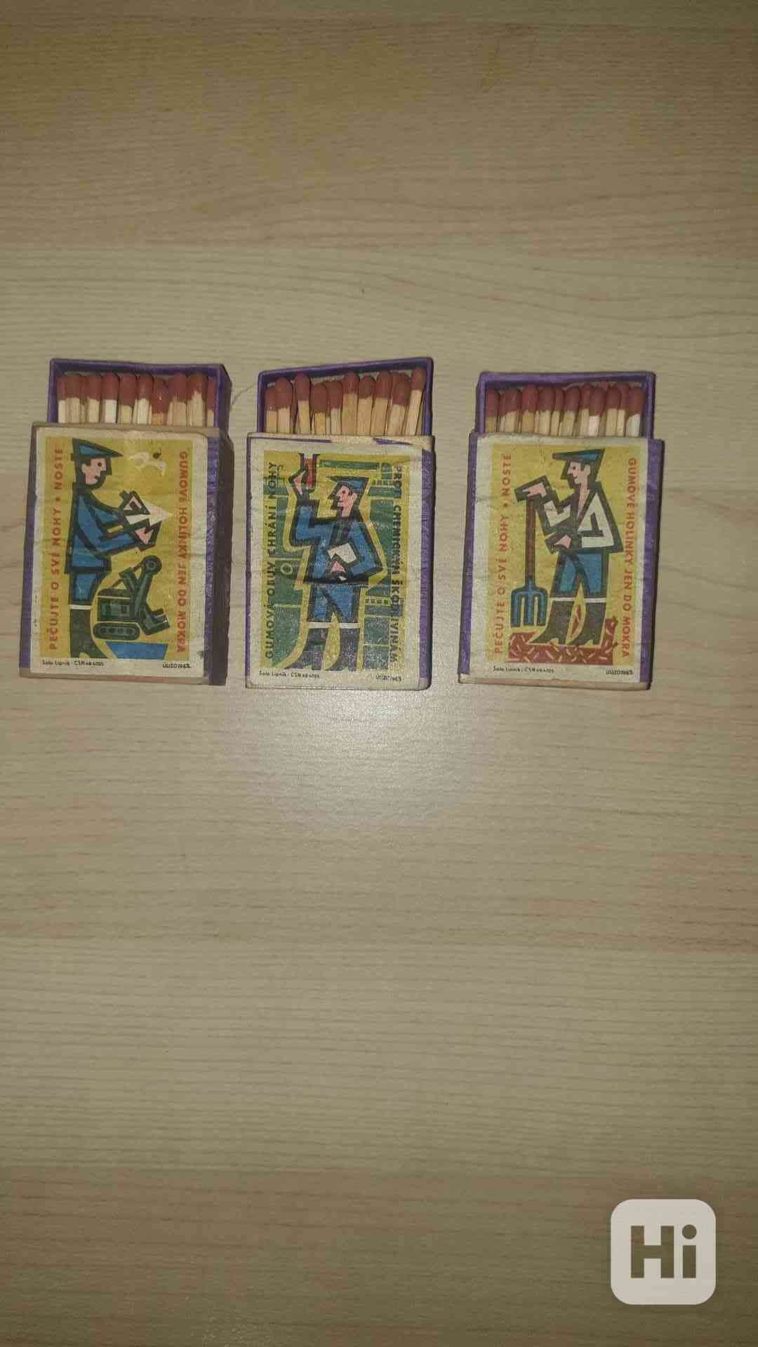 Staré dýhované krabičky se zápalkami.