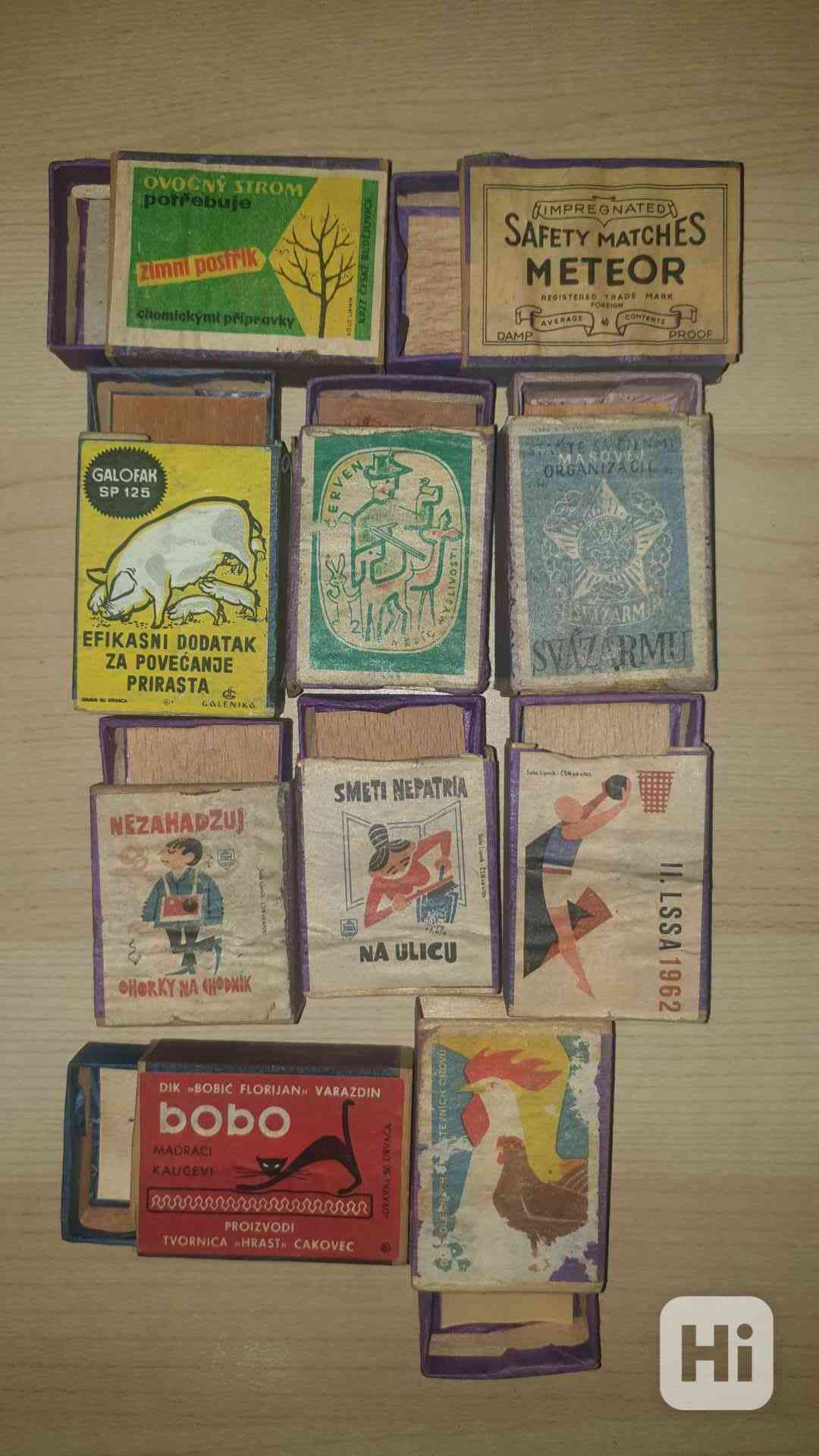 Staré dýhované krabičky se zápalkami.